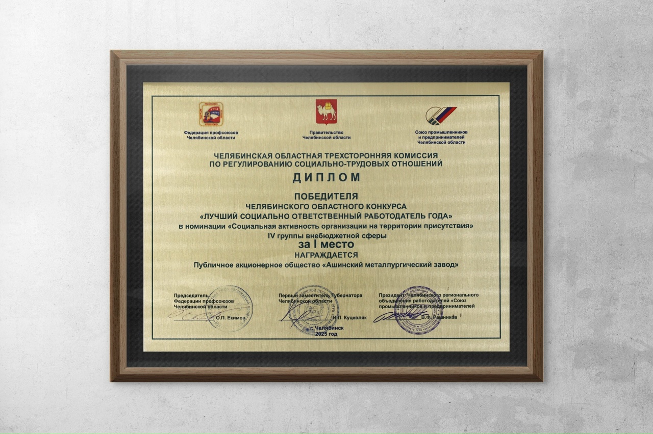ПАО «Ашинский металлургический завод» стал четырёхкратным победителем областного конкурса «Лучший социально ответственный работодатель года» по итогам 2024 года.