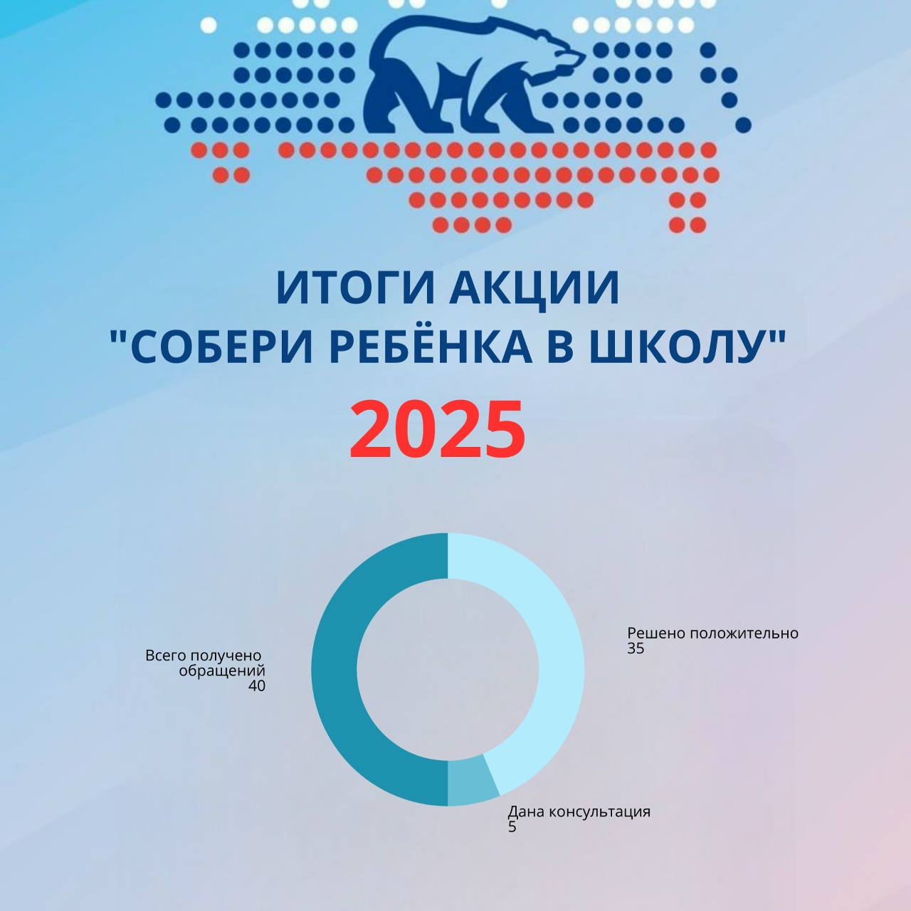 Акция направлена на поддержку семей, которые не могут самостоятельно обеспечить своих детей необходимыми школьными принадлежностями. В этом году в Ашинское местное отделение партии «Единая Россия» обратилось 40 семей по акции «Собери ребенка в школу», 35 семей получили подарочные сертификаты, канцелярские товары и школьные принадлежности, а также небольшие сладкие подарки в рамках акции.