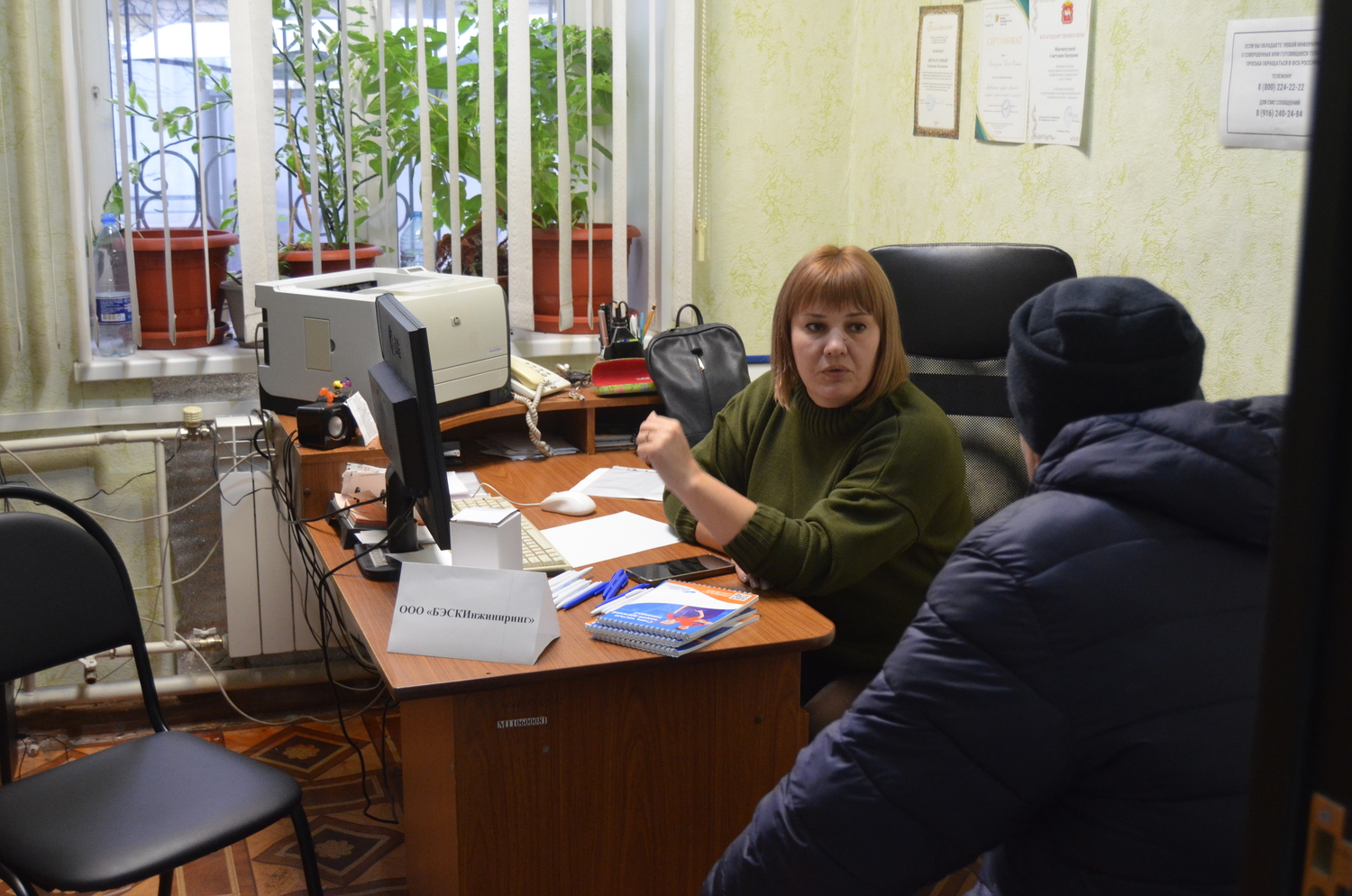 на фото: ведущий специалист по кадрам ООО «БЭСК Инжиниринг» Елена Евстифеева ведет прием соискателей в центре занятости г. Аши.