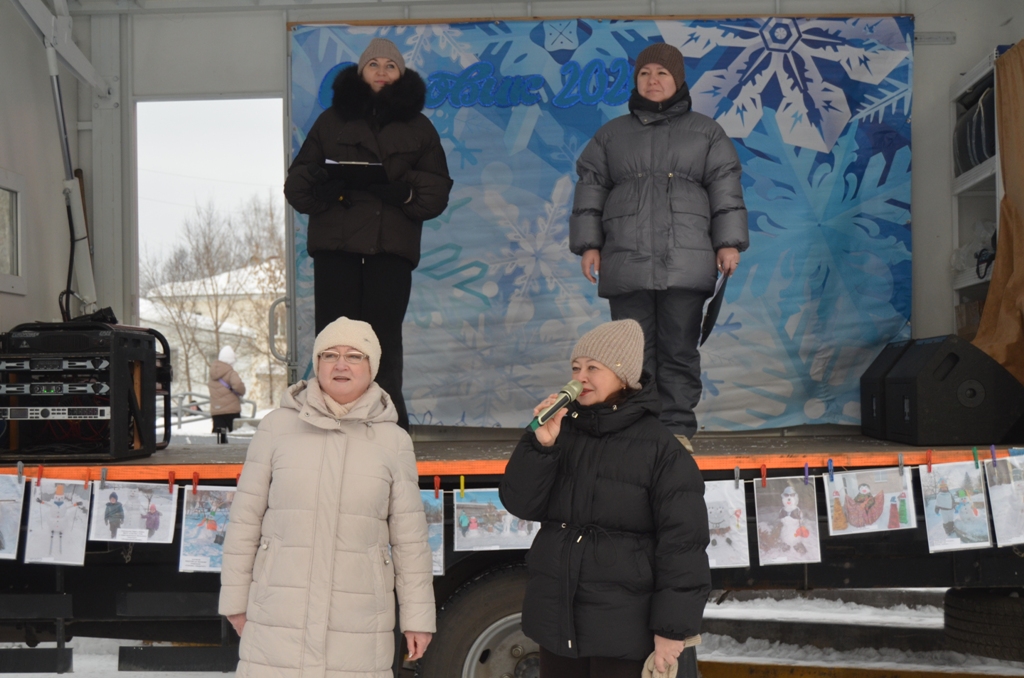 На создание снежных фигур командам отводилось 40 минут. Участники создали 25 снеговиков, ещё 17 снеговиков представленных сельскими домами Ашинского муниципального округа принимали заочное участие в конкурсе. Их можно было у сцены – на фотографиях.