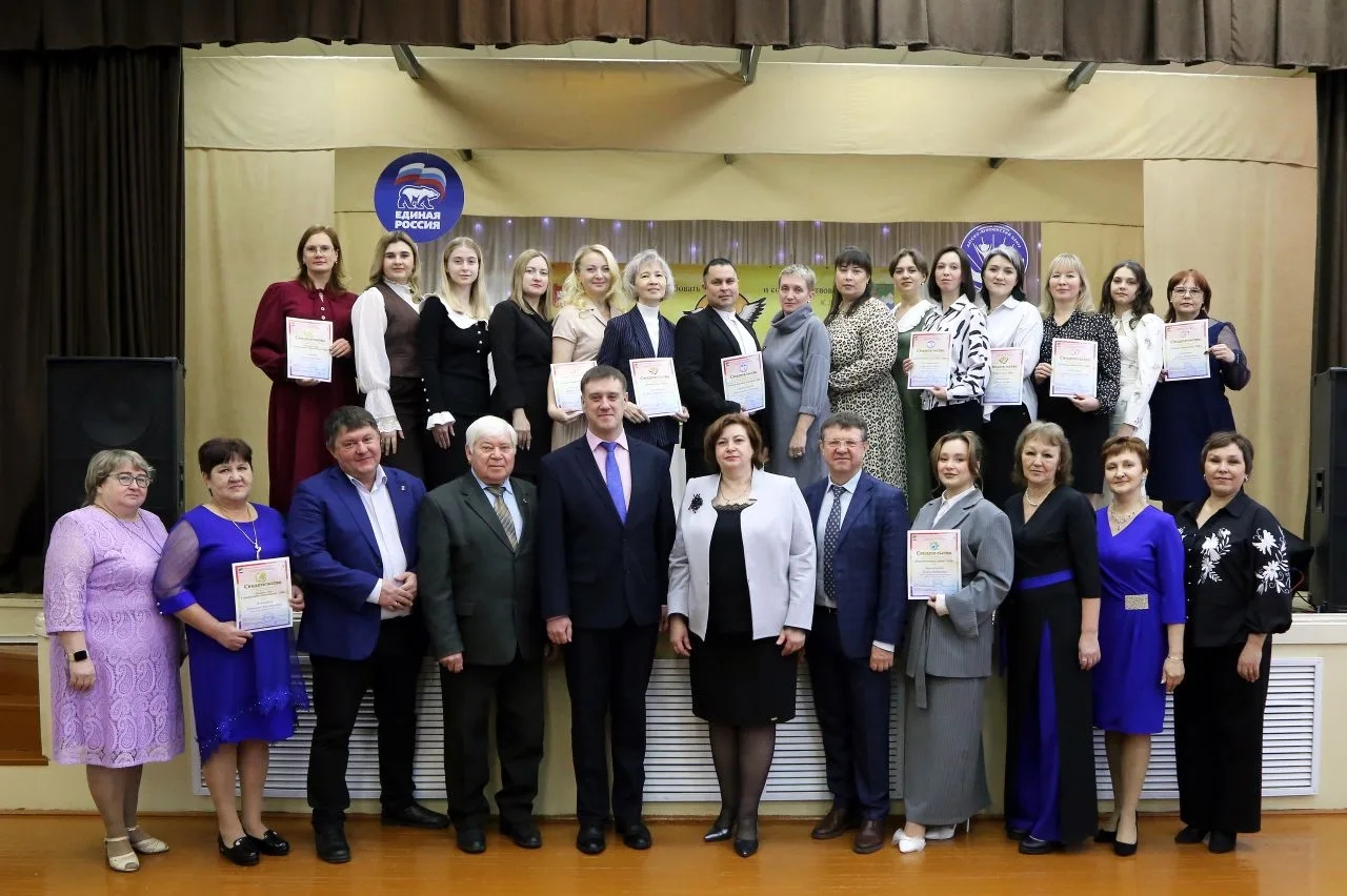 Заместитель главы Ашинского муниципального округа Рычков Александр Николаевич и председатель собрания депутатов Евгений Александрович Балыклов, секретарь местного отделения партии «Единая Россия» Леонид Анатольевич Назаров и председатель совета ветеранов Николай Николаевич Канышев отметили вклад учителей в воспитание молодого поколения и выразили благодарность за их труд.