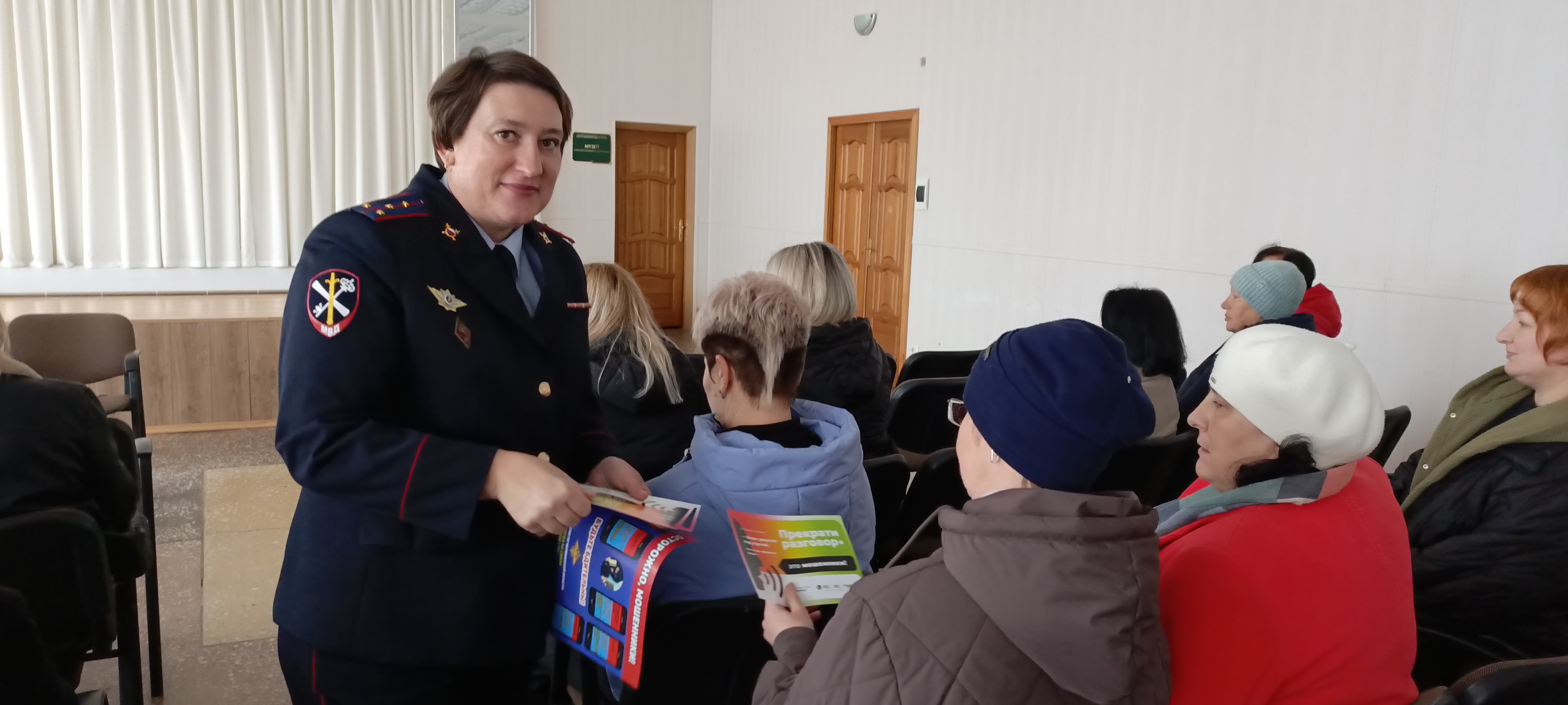 Стражи порядка продолжают проводить мероприятия с трудовыми коллективами из различных сфер. В ходе бесед рассказывают присутствующим об основных видах и способах совершения обмана.