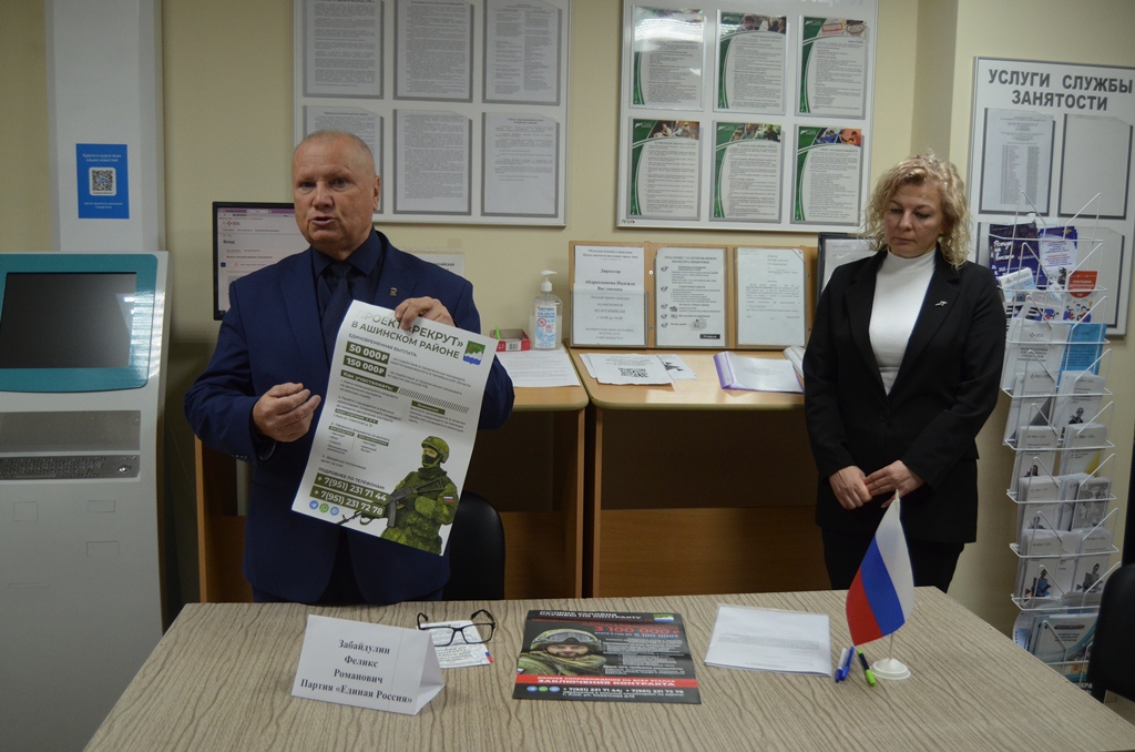 Феликс Романович обратил внимание соискателей на проводимый в Ашинском районе проект «Рекрут», акцентируя внимание на то, что родные и знакомые граждан могут принять участие на СВО.